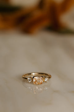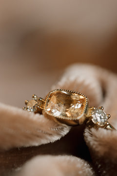 In an inviting yellow hue, this sapphire begged to be wrapped in gold and nestled between diamonds. A piece that makes us happy each time we look at it.